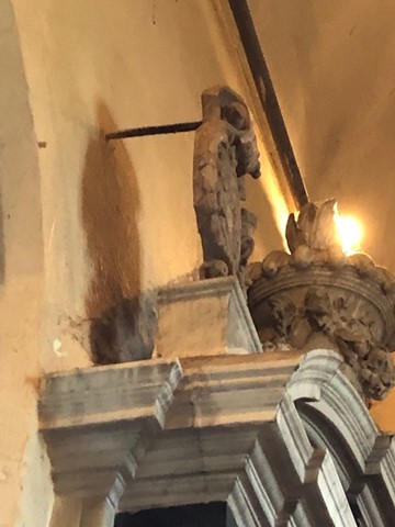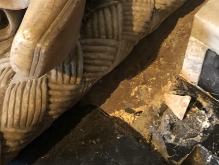 He also notes it’s one of only 11 in Buckinghamshire dated between 1660-80 ; the only one on this scale (it is 4.45m tall, 2.82m wide and projects 7.5cm from the wall) and the only one with an effigy.